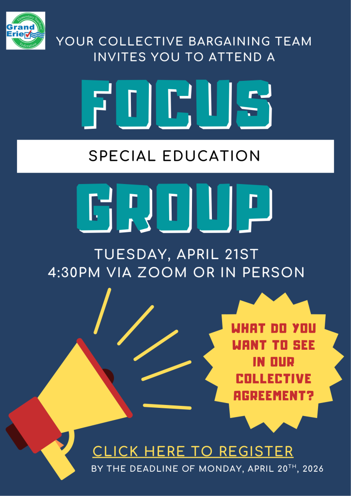 FacebookTwitterGoogle+LinkedInPinterest Focus Group - Special Education47 Focus Group – Special Education by GEETF Collective Bargaining Committee 105 people viewed this event. Date And Time 2026-04-21 @ 04:30 PM to Location GEETF Office, 49 Dalkeith Drive, Units 1 and 2, Brantford, ON Registration End Date 2026-04-20 Share With Friends Facebook Twitter Linkedin Xing Pinterest