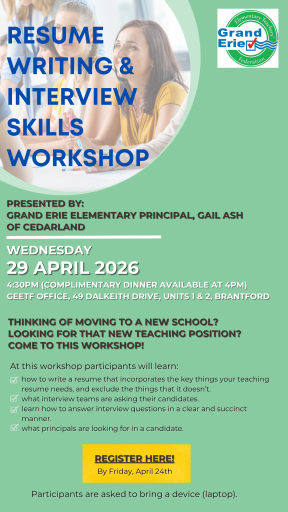 FacebookTwitterGoogle+LinkedInPinterest PL 'Resume Writing and Interview Skills' WS41 PL ‘Resume Writing and Interview Skills’ WS by GEETF Professional Learning Committee 87 people viewed this event. Date And Time 2026-04-29 @ 04:30 PM to Location GEETF Office, 49 Dalkeith Drive, Units 1 and 2, Brantford Registration End Date 2026-04-24 Share With Friends Facebook Twitter Linkedin Xing Pinterest